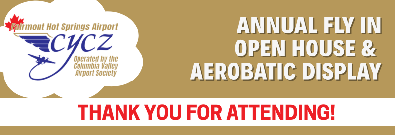 The Columbia Valley Airport Society would like to thank the airport volunteers, the Lake Windermere & District Lions Club, the Fairmont Lions Club, Angel Flight East Kootenay and the Fairmont Fire Department volunteer members for their support and participation in this year’s event.